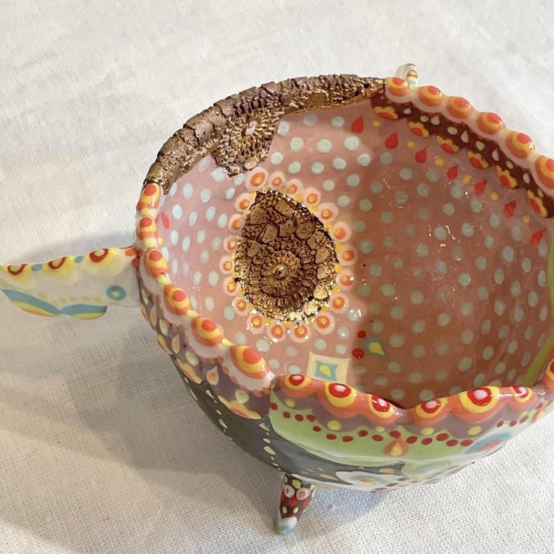 大阪・関西万博出品作品です。オリジナルの色で細かい絵付け独特な造形までアートな器です。